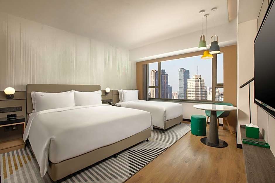 1 King Standard Nanjing Road View is 301 square feet and includes a king-size bed 150-183 width plus desk, satellite tv , cable tv, hairdryer, safe, bathrobes, and slippers.